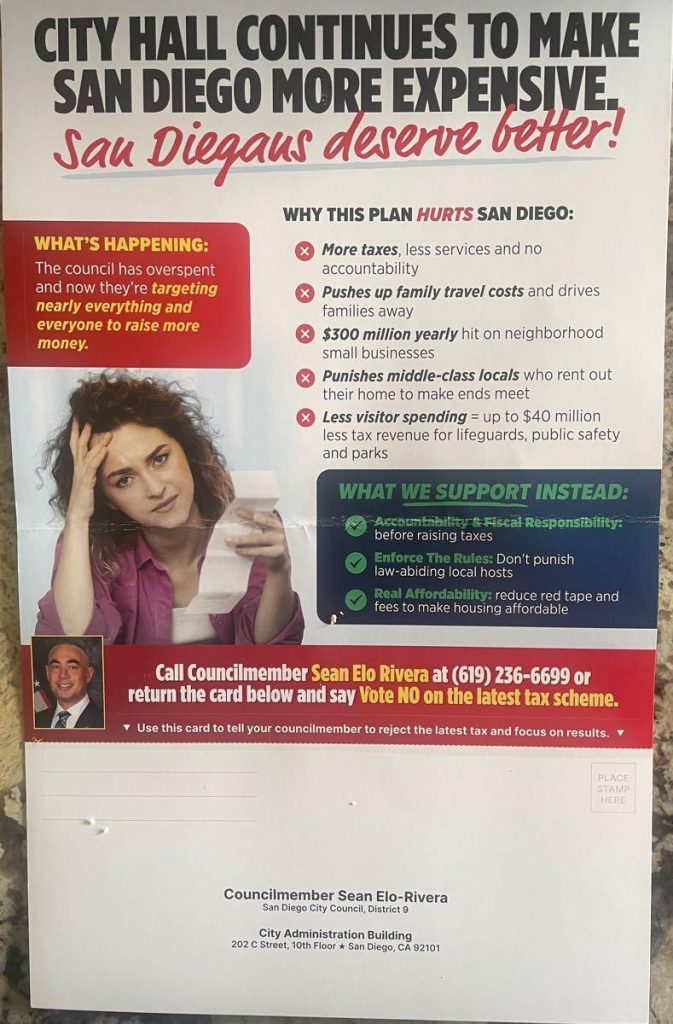 Note: This was sent through the Chamber of Commerce directly, not through their PAC, because there is no ballot item yet attached to the Vacancy Tax, so an election committee is not necessary.